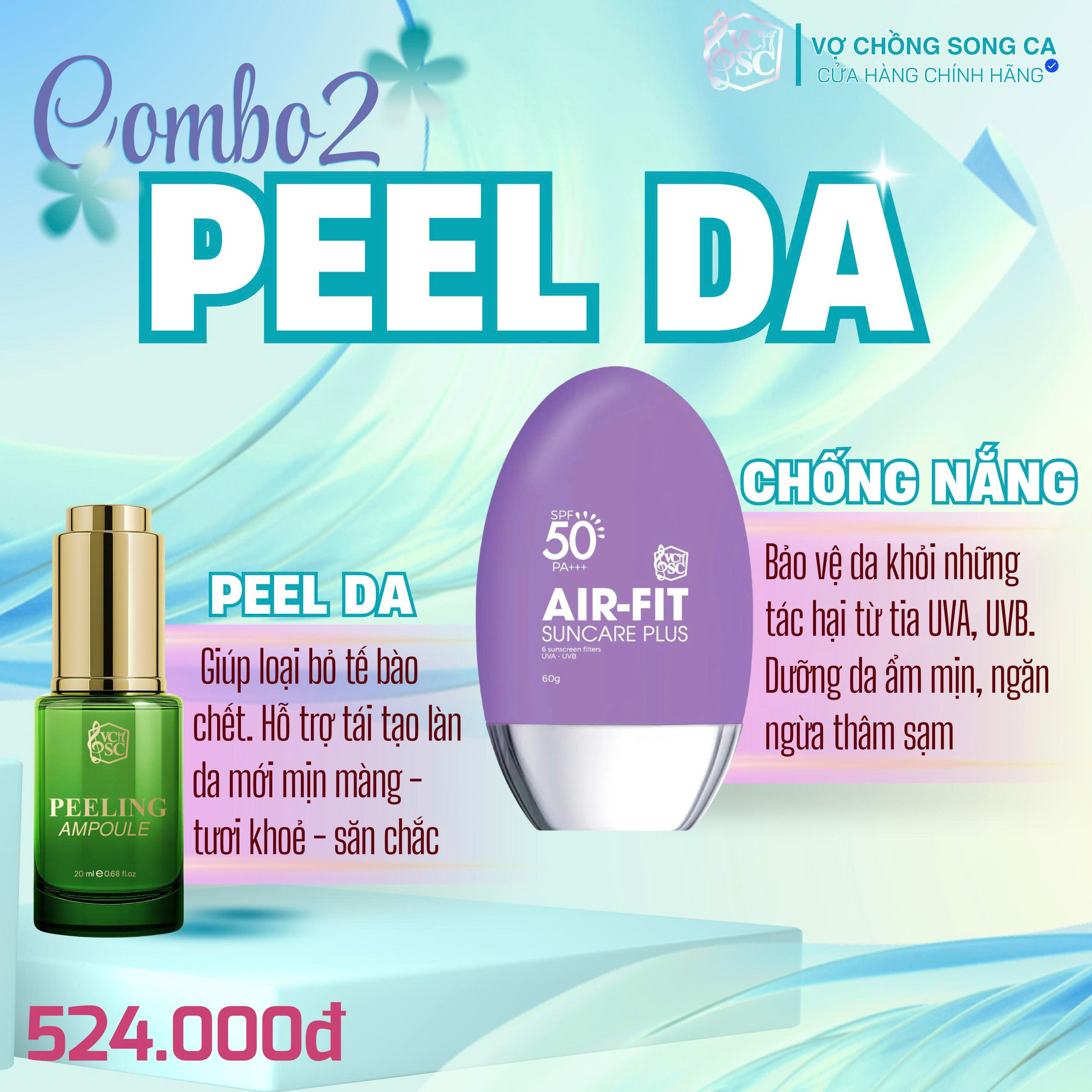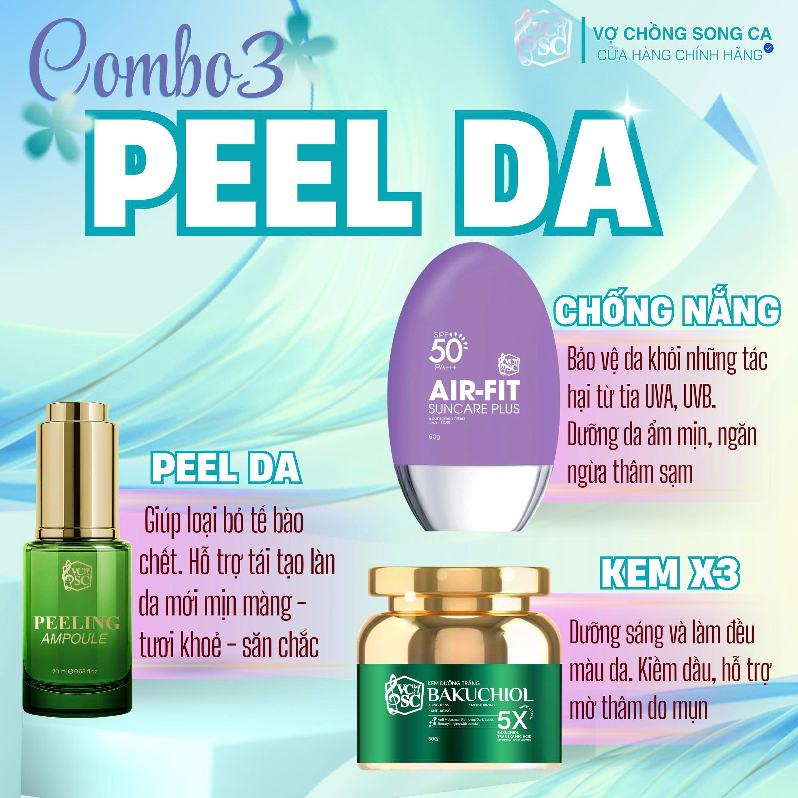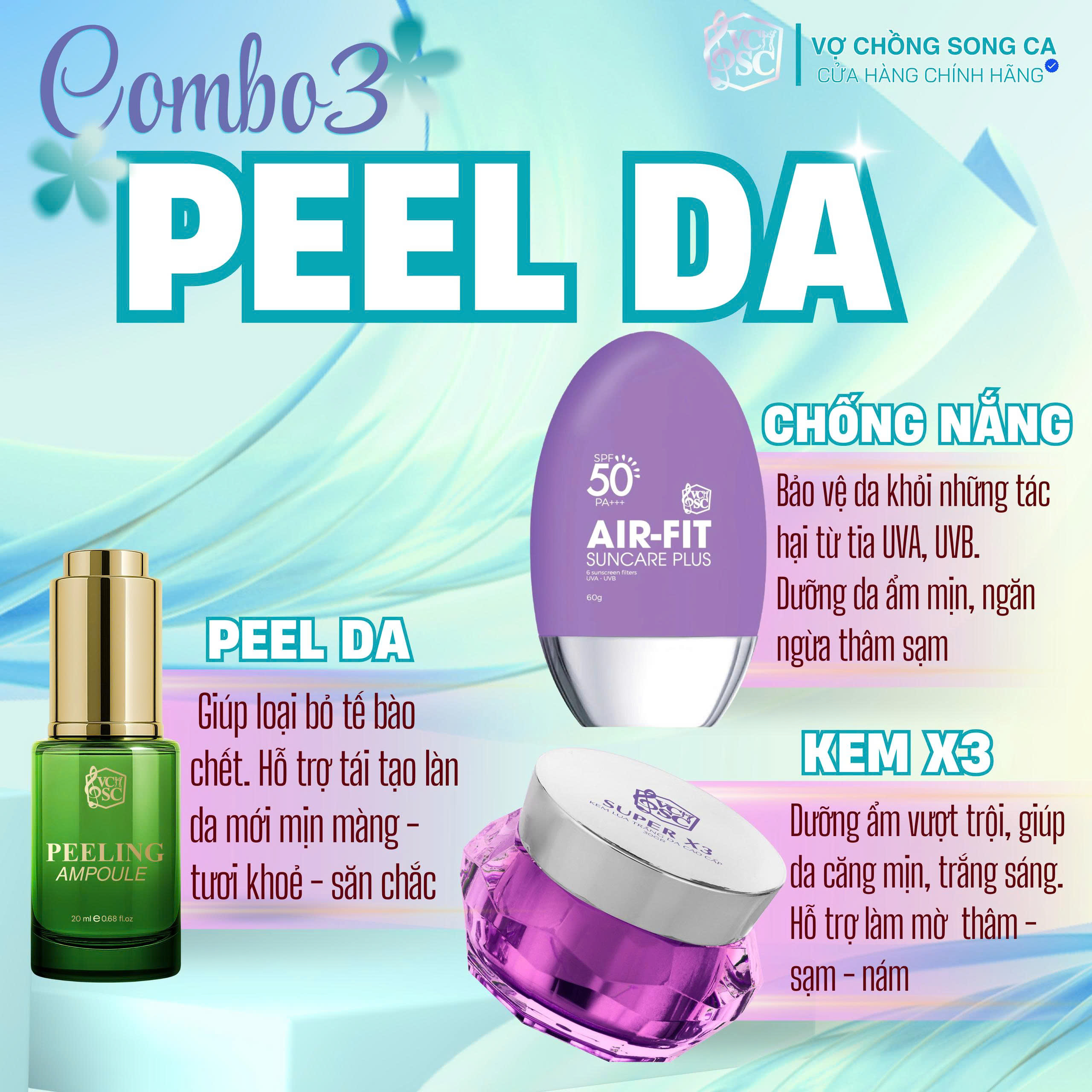 ![[Combo] Peel Da VCSC - Hỗ Trợ Loại Bỏ Lớp Sừng Trên Da, Tái Tạo Lại Làn Da Mới, Hỗ Trợ Sáng Da Và Làm Mờ Thâm, Nám, Sạm - Ảnh 3](https://vochongsongca.vn/wp-content/uploads/2026/01/z7468670062268_a863a4600e51e2f45f637411ec4785c1.jpg)