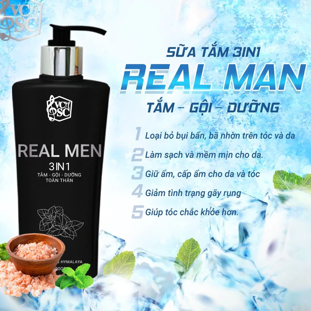 Sữa Tắm Gội Real Man 3in1 là giải pháp chăm sóc toàn diện dành riêng cho nam giới hiện đại bận rộn. Thay vì phải sử dụng nhiều chai lọ lỉnh kỉnh, nay bạn chỉ cần một bước duy nhất để làm sạch cơ thể, gội đầu và dưỡng da. Sản phẩm thuộc thương hiệu Mỹ Phẩm Vợ Chồng Song Ca, mang đến trải nghiệm sảng khoái và đẳng cấp phái mạnh.